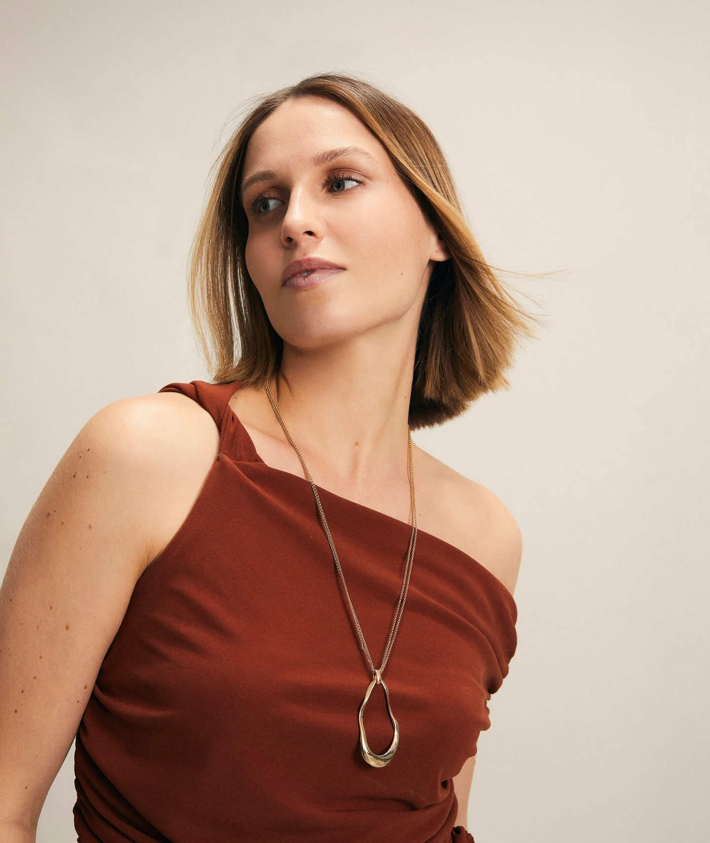 Colgante Darya colección Esenciales Chapado Oro 18 Kt con aro irregular. Medida de la cadena 60cm + 6cm ajustable.