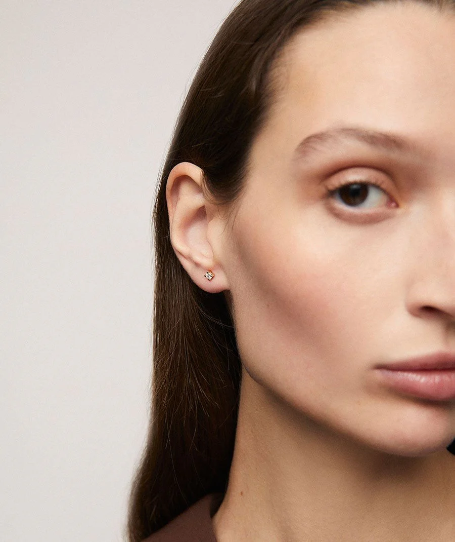 Pendientes solitarios de oro amarillo 18k con dos diamantes de 0.2 quilates en total.