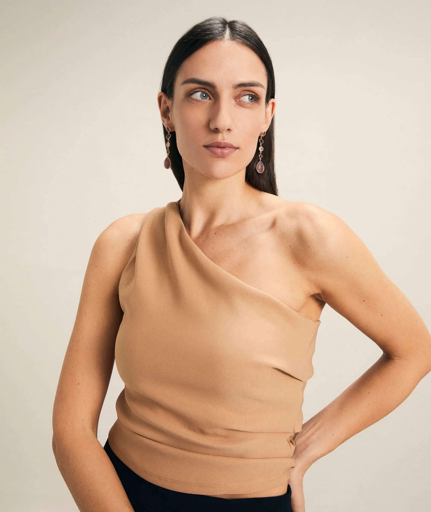 Pendientes Loreto colección Dreams Chapado Oro 18 Kt largos con piedras naturales en tonos pastel.